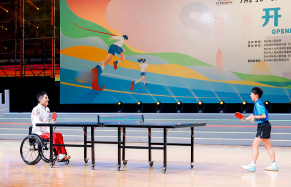 蘇州市第十六屆運動會開幕 巴黎殘奧會冠軍馮攀峰秀球技